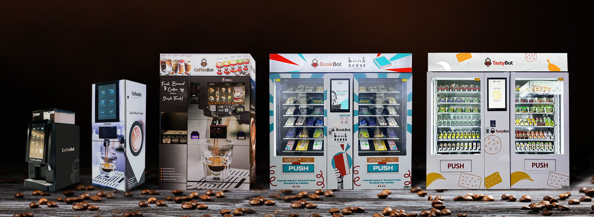 CoffeeBot offers a range of vending solutions, including CoffeeBot, BookBot, and TastyBot.